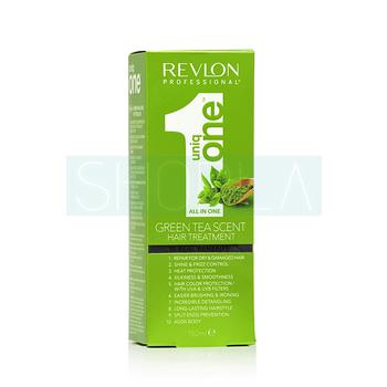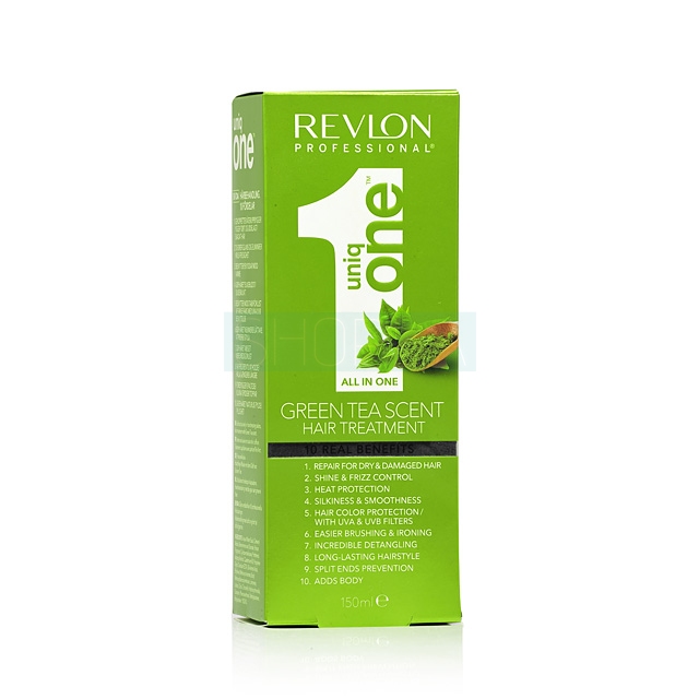 Kuracja w spray Revlon Uniq One Green Tea to 10 korzyści dla Twoich włosów, zamknięte w lekkiej, poręcznej butelce. Kosmetyk pozytywnie wpływa zarówno na kondycję, jak i na wygląd włosów. Posiada silne właściwości odżywcze i nawilżające. Znacznie podnosi odporność kosmyków na uszkodzenia, a także wygładza, nabłyszcza i zmiękcza pasma.