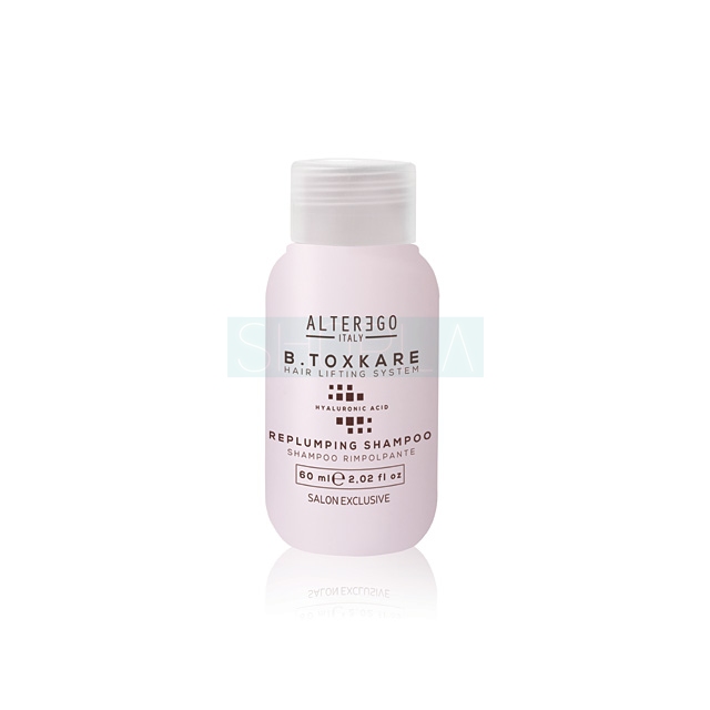 Szampon Alter Ego B.Toxkare Replumping to ostatni, 3 etap botoxu włosów. W dużej mierze dzięki niemu efekty zabiegu są zadowalające przez wiele tygodni. Podkreśla je i utrwala. Co więcej, pozytywnie wpływa na kondycję włosów. Intensywnie je odżywia, przywraca im optymalny poziom nawilżenia i hamuje procesy starzenia. Po zmyciu szamponu Alter Ego B.Toxkare Replumping włosy są jedwabiście gładkie, miękkie w dotyku i pełne blasku.