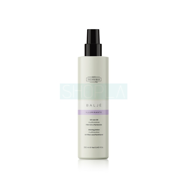 Spray Technique Balje Oil No Oil służy do pielęgnacji każdego rodzaju włosów. Tworzy na powierzchni pasm barierę ochronną, która zapobiega zniszczeniom włókien włosów na skutek działania czynników zewnętrznych, takich jak: promieniowanie ultrafioletowe, słona czy chlorowana woda. Technique Balje Oil No Oil sprawia, że włosy są jedwabiście gładkie, miękkie w dotyku i pełne blasku, a także znacznie łatwiej się rozczesują.