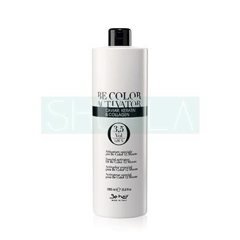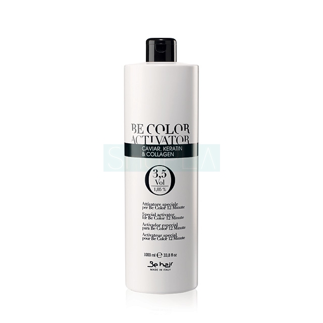 Oksydant Be Hair Be Color Activator 1,05% służy do łączenia z farbami Be Color Crazy 12 Minutes i rozjaśniaczami Be Color Deco. Ma kremową konsystencję, tworzy z nimi mieszankę, która łatwo rozprowadza się na pasmach i mocno do nich przylega. Receptura preparatu wzbogacona została: keratyną, kolagenem i kawiorem, dzięki czemu ma on pozytywny wpływ na kondycję włosów. Dodatkową zaletą oksydantu jest przyjemny zapach.