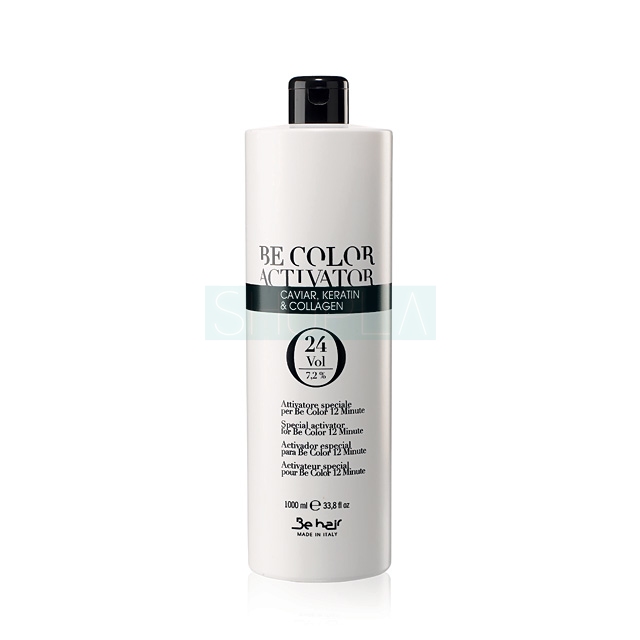 Be Hair Be Color Activator 7,2% to silny oksydant, przeznaczony do łączenia z farbami Be Color Crazy 24 Minutes, Be Color Crazy 12 Minutes i rozjaśniaczami Be Color Deco. Mieszanka tych substancji umożliwia znaczą zmianę koloru włosów. Oksydant posiada kremową konsystencję, co znacznie zwiększa komfort pracy, wpływa na niego także łagodny zapach. Preparat zawiera: keratynę, kolagen i kawior. Substancje te regenerują, odżywiają i wzmacniają włókna włosów.