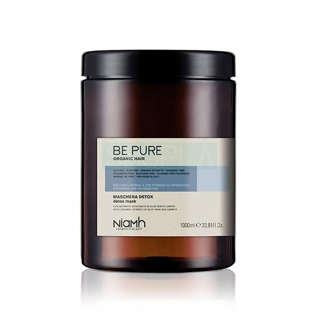 Niamh Be Pure Detox to maska, która reguluje pracę gruczołów i zapobiega nadmiernej produkcji sebum. Doskonale sprawdzi się w przypadku włosów normalnych i tłustych. Gwarantuje intensywne, trwałe uczucie świeżości. Jej receptura wzbogacona została ekstraktem z marchwi i aloesem. Substancje te, poza tym, że zapobiegają zbyt częstemu przetłuszczaniu się włosów, intensywnie je nawilżają, działają przeciwzapalnie, antybakteryjnie, a także wspomagają walkę z łupieżem.