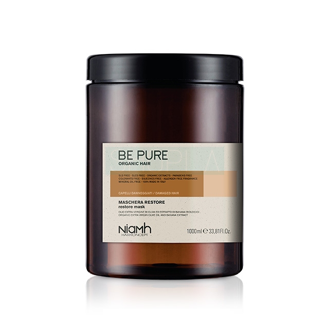 Maska do włosów Niamh Be Pure Restore oparta jest na oliwie z oliwek i ekstrakcie bananowym, dzięki temu doskonale sprawdza się w pielęgnacji pasm zniszczonych. Wspomniane substancje są skarbnicą witamin, cennych cukrów i minerałów. Odbudowują zniszczone włókna włosów, odżywiają je i podnoszą ich odporność na uszkodzenia. Pozytywnie wpływają także na kondycję skóry głowy. Regularne stosowanie maski Niamh Be Pure Restore pozwoli Ci cieszyć się zdrowymi, mocnymi i pięknymi włosami.