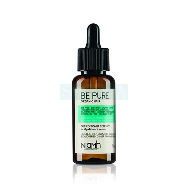 Serum Niamh Be Pure Scalp Defence służy do pielęgnacji wrażliwej skóry głowy. Łagodzi podrażnienia i zapobiega powstawaniu kolejnych. Jego receptura oparta jest na: imbirze, winogronie i kadzidłowcu. Poza właściwościami łagodzącymi, wykazuje także właściwości nawilżające, odżywcze, nawilżające, ochronne i antyoksydacyjne. Serum przeciwdziała nadmiernemu łuszczeniu się skóry i wspomaga walkę z łupieżem.