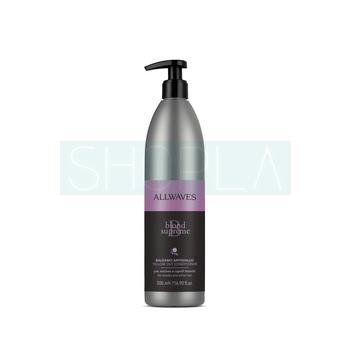 Odżywka Allwaves Blond Supreme służy do pielęgnacji włosów siwych i z pasemkami. Posiada silne właściwości neutralizujące, zwalcza żółte tony i zapobiega ich powstawaniu, a tym samym znacznie ułatwia utrzymanie chłodnej tonacji. Poza tym, że pozytywnie wpływa na wygląd włosów, dba o ich dobrą kondycję. Zawiera olej słonecznikowy, który odżywia włókna włosów, przywraca im optymalny poziom nawilżenia i uodparnia je na działanie czynników zewnętrznych, w tym wolnych rodników i promieni ultrafioletowych.