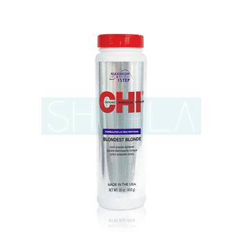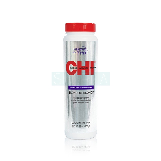 Rozjaśniacz CHI Blondest Blonde umożliwia zmianę koloru włosów nawet o 8 tonów. Zapewnia jednolity, świetlisty odcień, bez niepożądanych żółtych, ciepłych tonów. Produkt posiada bezpyłową formułę, co znacznie zwiększa komfort pracy. Jego receptura nie zawiera amoniaku, została natomiast wzbogacona substancjami, które pozytywnie wpływają na kondycję włosów i skóry głowy.