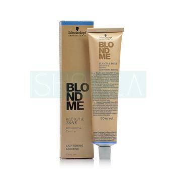 Schwarzkopf BlondMe Bleach&Tone to kremy rozjaśniająco-tonujące. Przeznaczone są do stosowania z pudrem rozjaśniającym Schwarzkopf BlondMe Premium 9+. Umożliwiają zmianę dotychczasowego koloru nawet o 8 tonów. Nadają pasmom pastelowy, chłodny ton. Poza tym dbają o ich dobrą kondycję. Wzbogacone są keratyną, olejem z pestek moreli oraz jedwabiem. Dzięki temu włosy po koloryzacji są odżywione, nawilżone, wygładzone i pełne blasku.