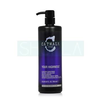 TIGI Catwalk Your Highness to odżywka przeznaczona do włosów osłabionych i matowych. Dzięki zawartości naturalnych składników dodaje włosom objętość i pięknie je nawilża. Zawarta w składzie lawenda regeneruje uszkodzenia na powierzchni włosów, a także kontroluje wydzielanie sebum. Jaśmin z kolei nawilża i odżywia skórę głowy nie dopuszczając do matowienia włosów, a fiołek łagodzi wszelkie podrażnienia skalpu. Dzięki temu bogatemu koktajlowi możliwe jest zapewnienie włosom kompleksowej pielęgnacji.