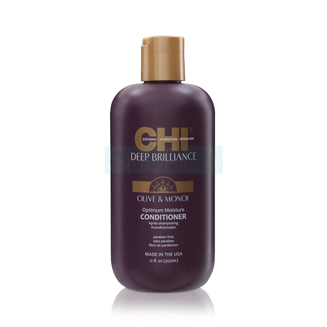 Odżywka CHI Deep Brilliance natychmiast przywraca włosom optymalny poziom nawilżenia. Jej receptura oparta jest na oleju monoi i oliwie z oliwek. Substancje te nie tylko nawilżają, ale także odżywiają włosy i podnoszą ich odporność na działanie czynników zewnętrznych. Po zastosowaniu odżywki pasma są jedwabiście gładkie, lśniące i miękkie w dotyku.