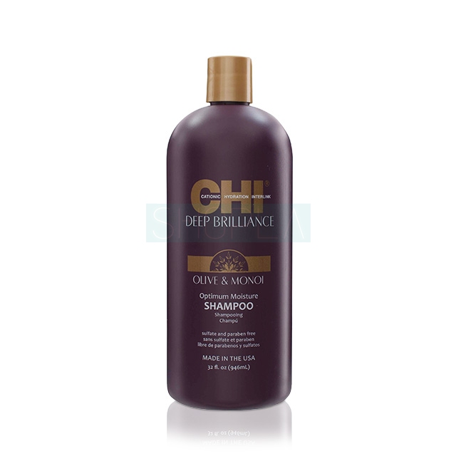 CHI Deep Brilliance to szampon do włosów przesuszonych. Przywraca im optymalny poziom nawilżenia i odżywia je. Jego działanie oparte jest na oliwie z oliwek i oleju monoi. Co więcej, zawiera także jedwab, który wygładza włosy, zmiękcza je i nabłyszcza. Szampon CHI Deep Brilliance ułatwia rozczesywanie pasm oraz ich układanie.