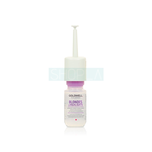 GOLDWELL Blondes & Highlights Serum to profesjonalne serum w ampułkach przeznaczone do pielęgnacji włosów blond i z pasemkami. Kosmetyk wzbogacono o Blonde Chroma Complex oraz Instant Microfluid technology, która zapewnia włosom intensywny kolor oraz ochronę przed wpływem czynników zewnętrznych.