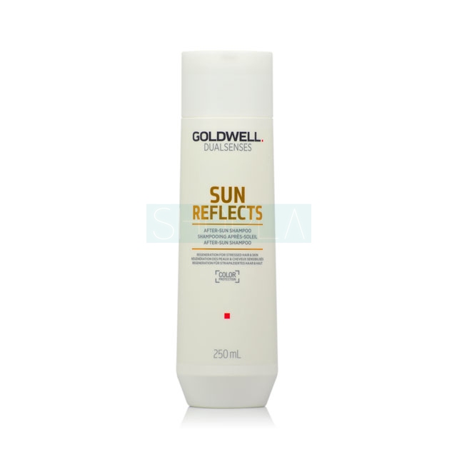 GOLDWELL Dualsenses Sun Reflects to profesjonalny szampon przeznaczony do włosów po kąpielach słonecznych. Kosmetyk wzbogacony został o innowacyjny Sun System zawierający naturalny olejek z passiflory oraz filtry UV, które kompleksowo dbają o przesuszone pod wpływem słońca pasma.