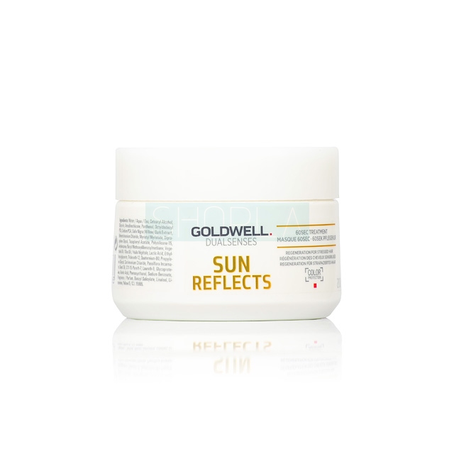 GOLDWELL Dualsenses Sun Reflects to regeneracyjna 60-sekundowa maska przeznaczona do regeneracji włosów po kąpielach słonecznych. Produkt wzbogacono o innowacyjny Sun System oraz olejek owocowy z passiflory, filtry UV, a także Instant Microfluid Technology, która pozwala równomiernie rozmieścić składniki pielęgnacyjne na powierzchni włosów.