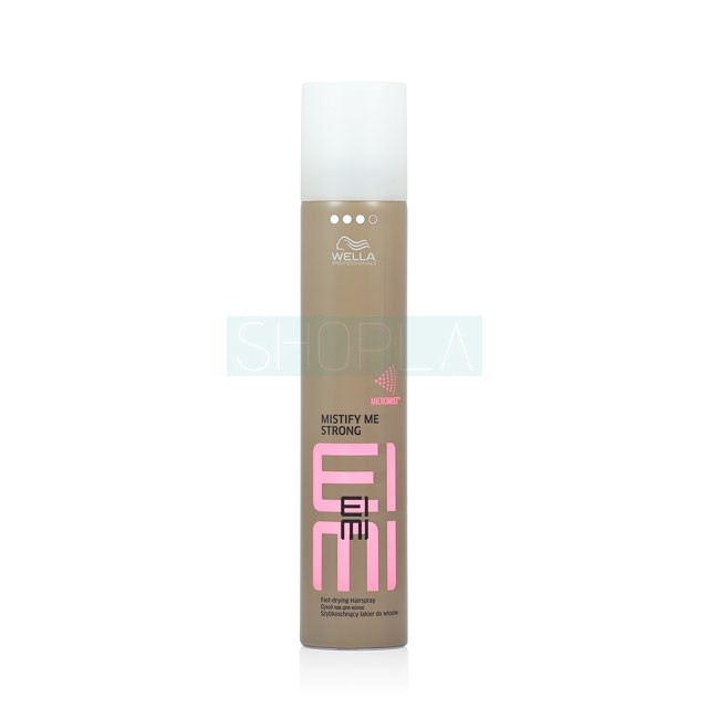 Lakier Wella Eimi Mistify Me Strong umożliwia skuteczne i długotrwałe utrwalenie nawet skomplikowanych fryzur. Działa na poziomie 3/4 i utrzymuje włosy w ryzach przez 24 godziny. Wydawać by się mogło, że silne działanie musi wiązać się z przykrymi konsekwencjami, jak chociażby obciążone i posklejane pasma, których nie da się bezboleśnie rozczesać. W przypadku lakieru Wella Eimi Mistify Me Strong takie nie występują. A wszystko to dzięki innowacyjnej technologii Micromist. Produkt otula włosy delikatną mgiełką, gwarantując naturalne wykończenie.