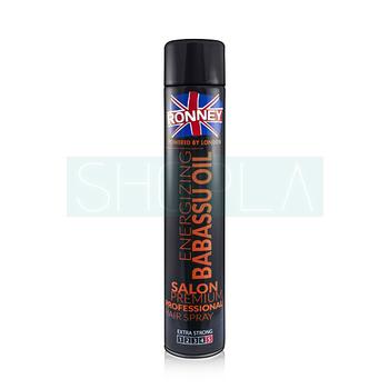 Ronney Energizing Babassu Oil Hair Spray to lakier do stylizacji, charakteryzujący się bardzo silny działaniem. Skutecznie utrwala nawet skomplikowane uczesania. Jego receptura została wzbogacona olejem babassu, dzięki czemu zyskał właściwości nawilżające i odżywcze.
