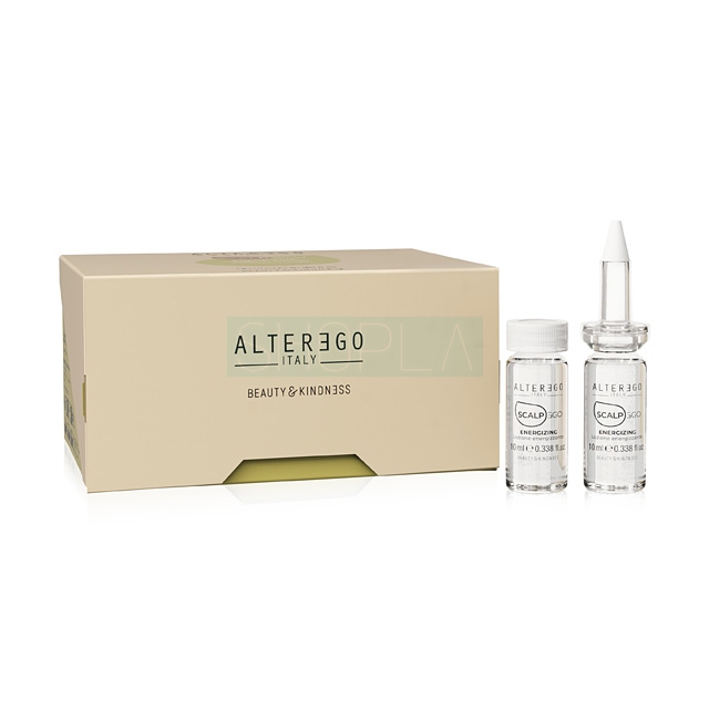 Kuracja Alter Ego Energizing Intensive Lotion przeznaczona jest do pielęgnacji włosów osłabionych, cienkich, wypadających. Nie tylko hamuje proces wypadania, ale także pobudza uśpione cebulki i realnie przyczynia się do zagęszczenia pasm. Działanie kuracji Alter Ego Energizing Intensive Lotion oparte jest na: żeń-szeniu, biotynie, argininie, ekstraktach z łopianu i modraka abisyńskiego. Preparat intensywnie odżywia włókna włosów, uelastycznia je i uodparnia na uszkodzenia. Co więcej, zapewniają kosmykom optymalny poziom nawilżenia.
