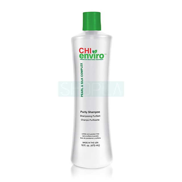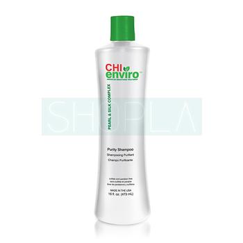 Szampon CHI Enviro Purity skutecznie oczyszcza i wygładza włosy. Został wzbogacony jedwabiem i ekstraktem perłowym, dzięki czemu pasma przestają się puszyć i zyskują blask. Szampon ten doskonale sprawdza się przed zabiegiem trwałego prostowania CHI Enviro. Przygotowuje pasma do zabiegu i pozytywnie wpływa na trwałość jego efektu.