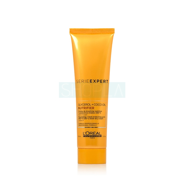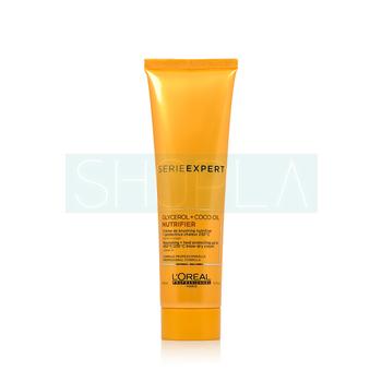 LOREAL Expert Nutrifier to termoochronny krem do włosów suchych. Kosmetyk idealnie sprawdzi się w codziennej stylizacji włosów, dodatkowo zapewniając im ochronę przed wpływem ciepła urządzeń do stylizacji – suszarki i prostownicy. Krem został wzbogacony o silnie nawilżający glicerol oraz olejek kokosowy, który odżywia, wygładza i chroni włókna włosów. Dzięki niemu pasma są bardziej miękkie i pełne blasku.