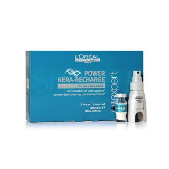 LOREAL Expert Power Kera-Recharge to profesjonalna kuracja w ampułkach przeznaczona do włosów zniszczonych. Formuła ampułek została wzbogacona o odbudowującą Pro-Keratynę oraz cząsteczkę Incell,. Składniki te skutecznie odżywiają pasma oraz wypełniają uszkodzenia na całej powierzchni włosów. Dzięki ampułkom pasma szybko odzyskują elastyczność i miękkość, a także stają się odporne na działanie szkodliwych czynników zewnętrznych.