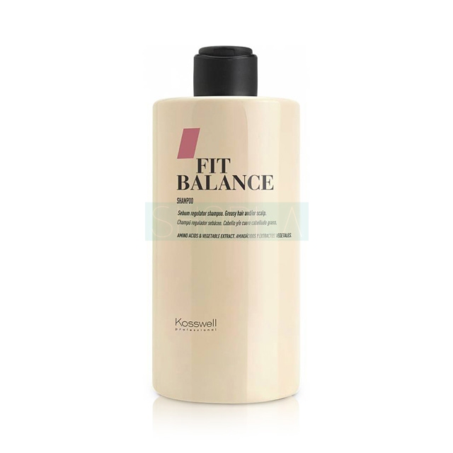Kosswell Fit Balance Shampoo - szampon do codziennej pielęgnacji włosów przetłuszczających się. Przy regularnym stosowaniu skutecznie kontroluje i z czasem pozwala całkowicie wyeliminować nadmierne wydzielanie sebum. Dzięki połączeniu witamin z grupy B z aminokwasami i ekstraktami roślinnymi jest bezpieczny dla podrażnionej skóry głowy, a przy tym skutecznie ją oczyszcza. Specjalnie opracowana formuła dodatkowo zapobiega powracaniu problemu hamując enzym 5-alfa-reduktazy. Dodaje włosom świeżości równocześnie je odżywiając i dodając im miękkości i blasku. Pozwala uzyskać efekt lśniących włosów bez efektu przetłuszczania się i przyklapnięcia u nasady.