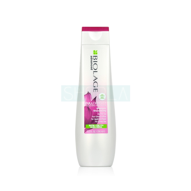 Biolage Full Density to innowacyjny szampon przeznaczony do codziennej pielęgnacji włosów cienkich i pozbawionych objętości. Formuła kosmetyku stanowi oryginalne połączenie technologii i naturalnych składników. Biotyka, cynk PCA oraz kompleks Gluco-Omega wzmacniają macierz włosa, regenerują uszkodzenia powstałe na powierzchni skóry głowy, a także przyśpieszają wiązanie keratyny we wnętrzu pasm. Z kolei naturalny ekstrakt z krokosza barwierskiego stymuluje cebulki włosowe do wzrostu, co w widoczny sposób zagęszcza pasma.