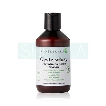 Odżywka Bioelixire Gęste włosy pobudza cebulki do wzrostu i niweluje przerzedzanie się pasm. Jej regularne stosowanie pozwoli Ci cieszyć się niezwykle gęstymi, mocnymi włosami. Receptura kosmetyku wzbogacona została: agrestem indyjskim, masłem shea, olejem winogronowym, argininą i wieloma innymi substancjami, które pozytywnie wpływają na ogólną kondycję włosów. Odżywka Bioelixire uelastycznia włókna włosów, zapobiega rozdwajaniu się końcówek, a także skutecznie zwalcza wolne rodniki.