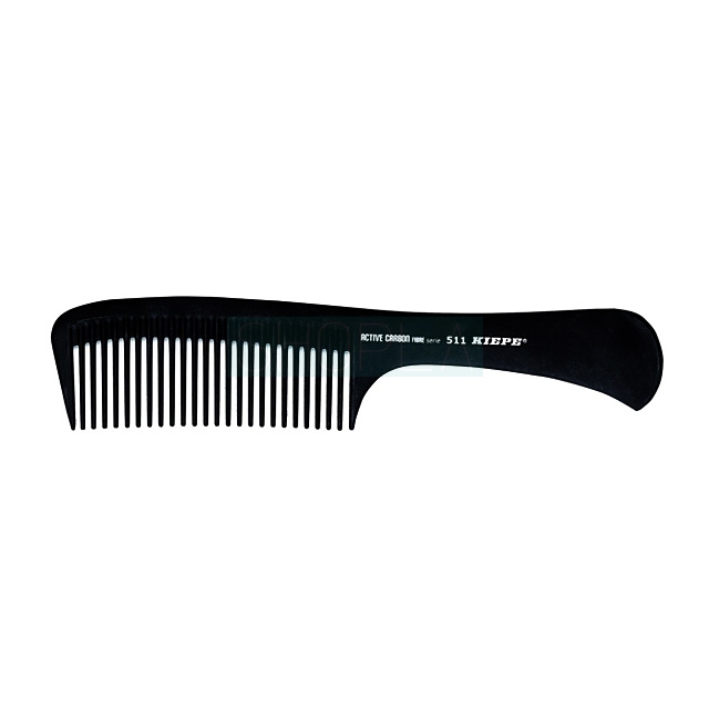 KIEPE (511) Active Carbon Comb 222x48 to profesjonalny grzebień do włosów, który dokładnie rozczesuje włosy. Idealnie sprawdzi się także do nakładania odżywek na całą długość pasm. Wykonany jest z lekkiego materiału, dlatego dobrze leży w dłoni. Grzebień jest odporny na wysoką temperaturę, a więc może być wykorzystywany w trakcie stylizacji na ciepło. Wykazuje także działanie antybakteryjne i antystatyczne.