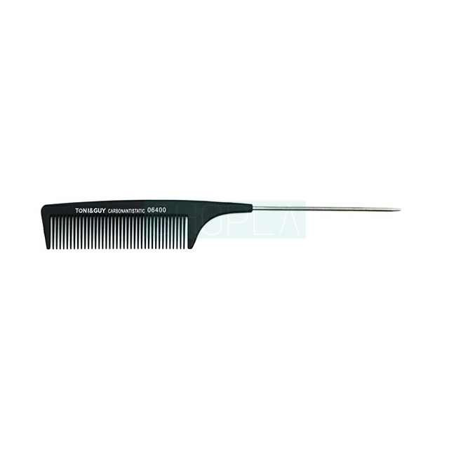 Toni&Guy Carbon Antistatic 06400 to grzebień, który jest przydatny podczas wielu zabiegów fryzjerskich. Posiada metalowy szpikulec, który znacznie ułatwia dzielenie włosów na sekcje i unoszenie poszczególnych elementów fryzury. Grzebień jest odporny na działanie czynników zewnętrznych, a tym samym na uszkodzenia. Możesz mieć pewność, że będzie Ci służył bardzo długo.