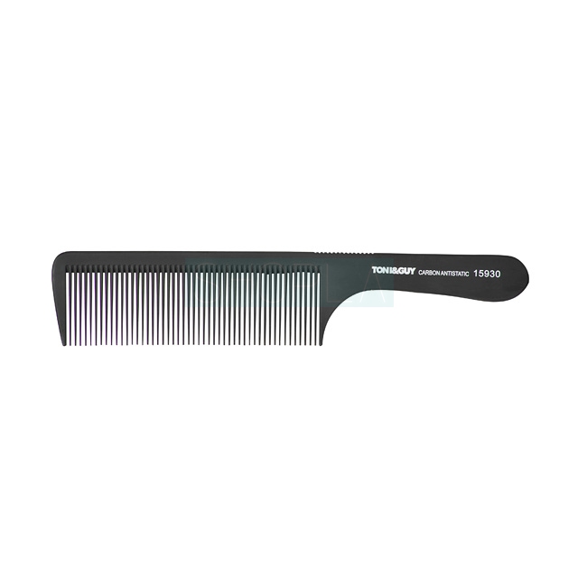 Toni&Guy Carbon Antistatic 15930 to grzebień z długimi zębami. Świetnie sprawdzi się w pielęgnacji każdego rodzaju włosów, zwłaszcza tych grubych i gęstych. Skutecznie rozczesuje pasma, równie dobrze sprawdzi się podczas rozprowadzania odżywek i masek. Posiada właściwości antystatyczne – nie elektryzuje włosów. Pozostawia je gładkie i lśniące.