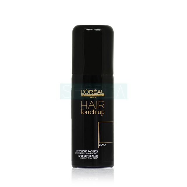LOREAL Touch Up Black - spray maskujący odrosty (kolor czarny). Kosmetyk wzbogacony został o nasycone pigmenty, które szybko wchłaniają się w powierzchnię włosa, gwarantując precyzyjne pokrycie odrostu lub siwizny. Spray wzbogacony został o aplikator, który ułatwia precyzyjne dozowanie produktu.