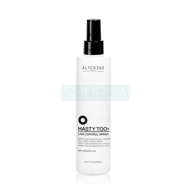 Spray Alter Ego Hasty Too Liss Control dyscyplinuje nawet wyjątkowo niesforne włosy. Wygładza pasma i zapobiega ich puszeniu się. Jego receptura wzbogacona została: panthenolem, hydrolizowaną keratyną oraz olejem z baobabu. Dzięki temu, Alter Ego Hasty Too Liss Control ma działanie: odżywcze, nawilżające i ochronne.