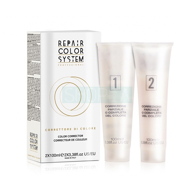 Renee Blanche Haute Coiffure Repair Color System to profesjonalny zestaw do ściągania koloru. Umożliwia całkowite lub częściowe pozbycie się sztucznego pigmentu. Jest bardzo prosty w użyciu i charakteryzuje się wysoką skutecznością. Zestaw został stworzony w taki sposób, by był w pełni bezpieczny dla włókien włosów. W skład zestawu wchodzą: dwa preparaty usuwające pigment, rękawiczki ochronne oraz szczegółowa instrukcja.