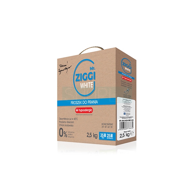 Proszek Mr. Ziggi przeznaczony jest do prania kolorowych tkanin. Skutecznie usuwa nie tylko plamy, ale także bakterie, roztocza i grzyby. Działa już w 20°C. Posiada hipoalergiczną formułę. Nie zawiera fosforanów i zeolitów. Jest przyjazny środowisku, gdyż jego opakowanie w 100% można ponownie przetworzyć.