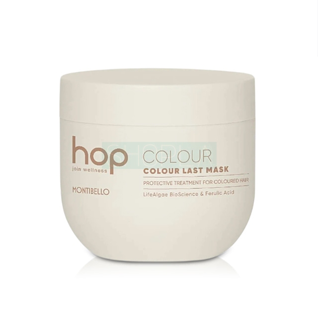 Montibello HOP Colour Last to specjalistyczna maska stworzona z myślą o pielęgnacji włosów farbowanych. Jej zaawansowana formuła z algami morskimi wspiera utrwalenie koloru i jego intensywność, skutecznie zapobiegając wypłukiwaniu się pigmentu. Maska zapewnia kompleksową ochronę włosów przed szkodliwym wpływem środowiska, promieniowaniem UV oraz wolnymi rodnikami, jednocześnie intensywnie je nawilżając i odżywiając.