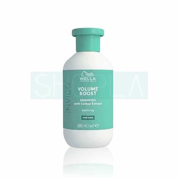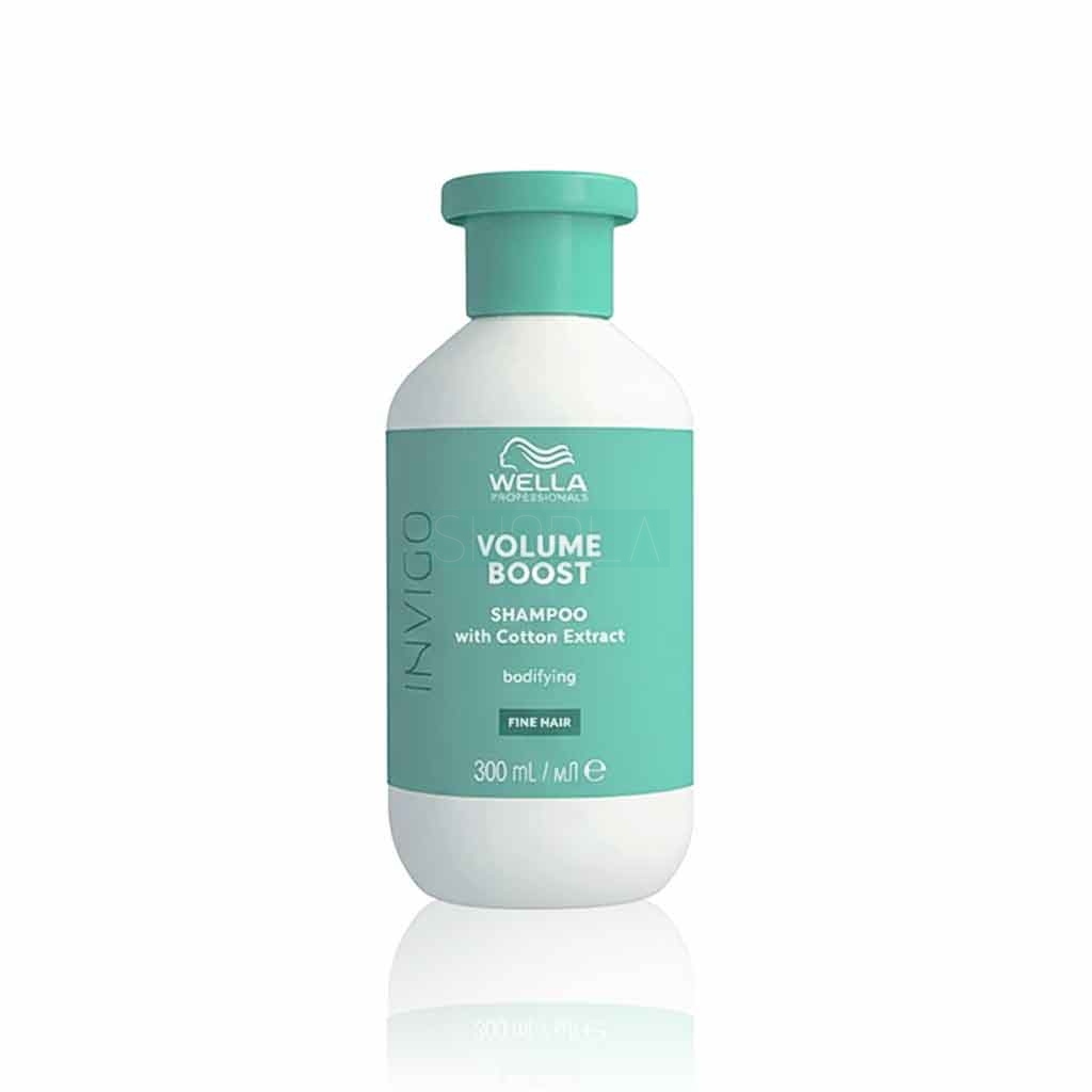 Wella Invigo Volume Boost to szampon przeznaczony do pielęgnacji włosów, którym brak objętości. Skutecznie oczyszcza powierzchnię pasm i skóry głowy z wszelkich zanieczyszczeń. Został wzbogacony substancjami, które nie tylko odbijają pasma od nasady, ale także pogrubiają je na długości. W składzie szamponu Wella Invigo Volume Boost znajdują się między innymi nawilżająca gliceryna i ekstrakt z bawełny, która jest silnym antyoksydantem, regeneruje uszkodzone kosmyki, zmniejsza ich łamliwość, nabłyszcza i zmiękcza.
