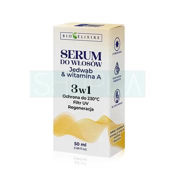 Serum Bioelixire Jedwab + witamina A przeznaczone jest do pielęgnacji każdego rodzaju włosów, także tych suchych i zniszczonych. W jego składzie znajdują się: jedwab, witamina A i koenzym Q10. Substancje te posiadają silne właściwości: odżywcze, nawilżające i antyoksydacyjne. Serum znacznie zmniejsza łamliwość włókien włosów i podnosi ich odporność na uszkodzenia.