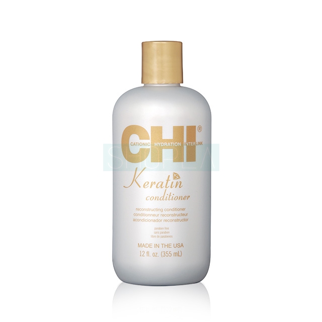 CHI Keratin to odżywka do zadań specjalnych. Przywraca nienaganną kondycję nawet mocno zniszczonym włosom. Jest to możliwe dzięki keratynie, na której oparta jest receptura odżywki. Substancja ta posiada silne właściwości regenerujące, uelastycznia kosmyki i znacznie podnosi ich odporność na kolejne uszkodzenia. Z kolei olej arganowy intensywnie odżywia włosy i zwalcza wolne rodniki, pantenol przywraca kosmykom optymalny poziom nawilżenia, a jedwab zapobiega puszeniu się pasm.