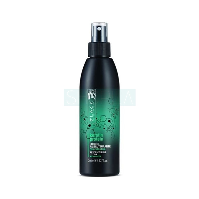 Lotion Black Protein Keratin służy do pielęgnacji włosów zniszczonych. Zawiera keratynę, która przenika do włókien włosów, regeneruje je, wypełnia ubytki strukturalne i znacznie podnosi ich odporność na kolejne uszkodzenia. Włosy zyskują optymalny poziom nawilżenia, stają się gładkie, miękkie i lśniące. Lotion Black Protein Keratin dyscyplinuje pasm i ułatwia ich rozczesywanie.