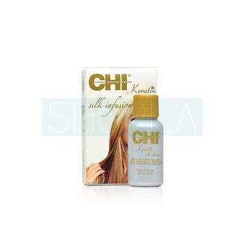Kuracja CHI Keratin Silk Infusion szybko przywróci włosom nienaganną kondycję. Zawiera: keratynę, olej arganowy, olej jojoba i jedwab. Substancje te regenerują zniszczone włókna włosów, odżywiają je, nawilżają i uodparniają na uszkodzenia. Co więcej, kuracja CHI dyscyplinuje niesforne pasma, zapobiega ich puszeniu się i sprawia, że chętnie współpracują.