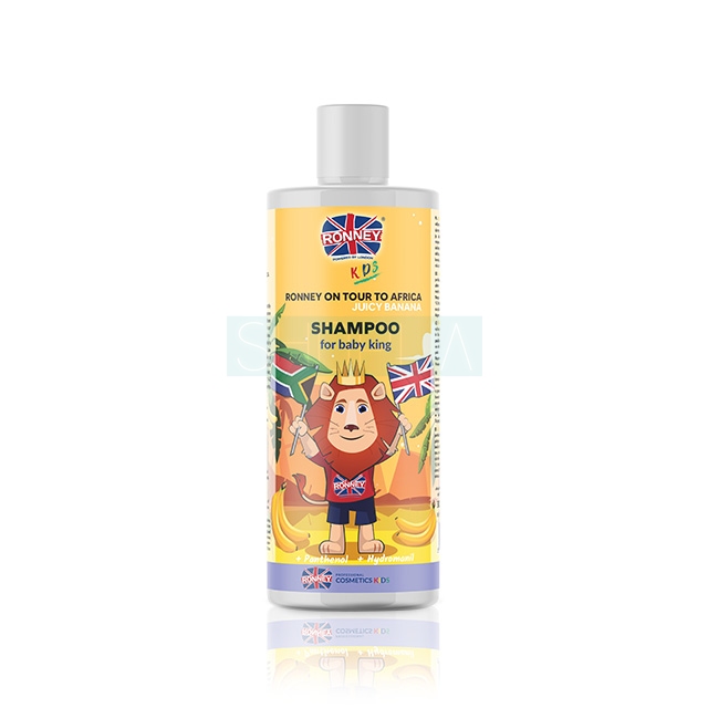Szampon Ronney Kids On Tour To Africa przeznaczony jest do codziennej pielęgnacji dziecięcych włosów. Skutecznie, a jednocześnie bardzo delikatnie usuwa z powierzchni pasm i skóry głowy wszelkie zanieczyszczenia. Nie powoduje podrażnień. Receptura szamponu Ronney Kids On Tour To Africa wzbogacona została pantenolem, charakteryzującym się silnym działaniem nawilżającym. Posiada intensywny, bananowy zapach.