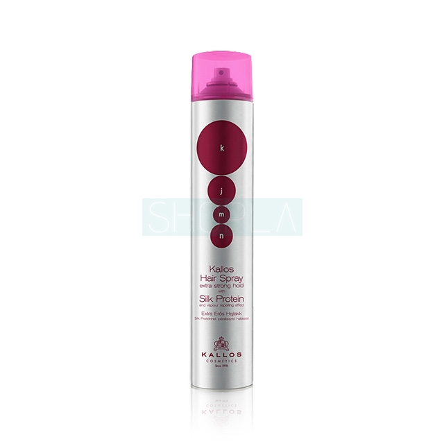 Kallos KJMN Extra Strong Silk Protein to lakier do stylizacji każdego rodzaju włosów. Skutecznie utrwala fryzurę i sprawia, że pozostaje niezmienna, nawet pomimo niesprzyjających warunków. Pomimo silnego działania utrwalającego, lakier Kallos KJMN Extra Strong Silk Protein zapewnia naturalne wykończenie – bez posklejanych kosmyków i obciążonych pasm. Co więcej, jego receptura wzbogacona została proteinami jedwabiu, które zapobiegają puszeniu się włosów i dodają im blasku.