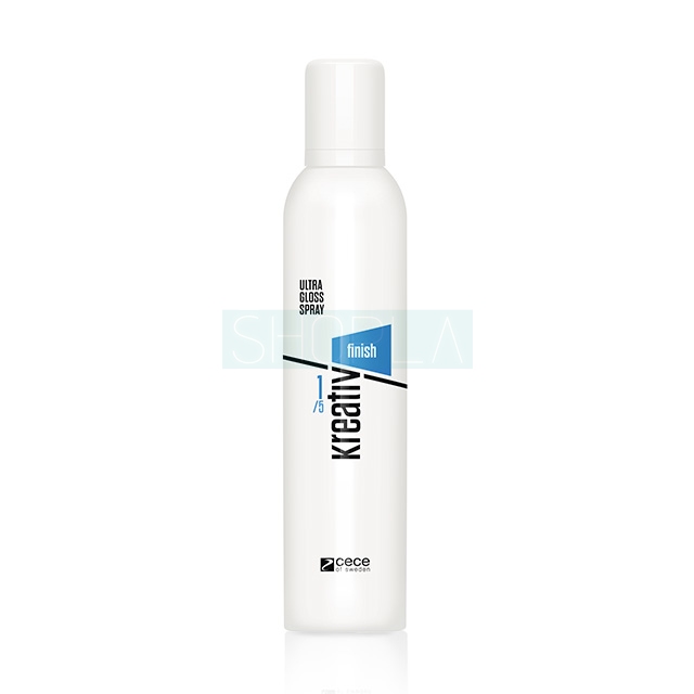 Lakier CeCe Kreativ Finish Ultra Gloss Spray posiada silne właściwości utrwalające. Gwarantuje naturalne, błyszczące wykończenie, bez obciążonych pasm i bez posklejanych kosmyków. Jego receptura została wzbogacona substancjami odżywczymi i nawilżającymi. Kosmetyk ten dba więc nie tylko o wygląd, ale także o kondycję włosów.