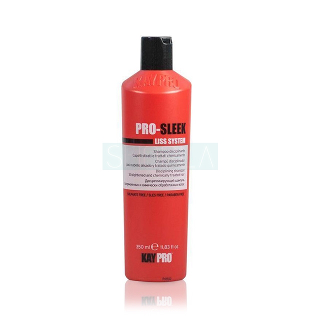 Włosy po prostowaniu wymagają specjalistycznej pielęgnacji. Na ratunek przychodzi szampon KayPro Liss System Pro-Sleek. Nie tylko podkreśla efekty zabiegu, ale także znacznie je przedłuża. Sprawia, że pasma są perfekcyjnie gładkie, nie puszą się i nie plączą. Co więcej, dodaje im blasku, ułatwia rozczesywanie i modelowanie. Szampon KayPro Liss System Pro-Sleek pozytywnie wpływa również na kondycję włosów.