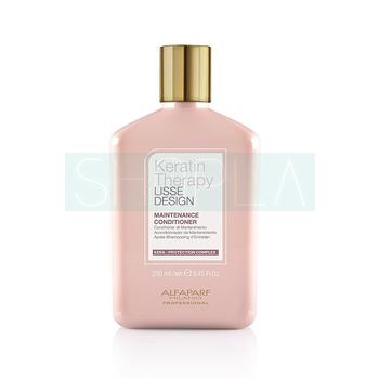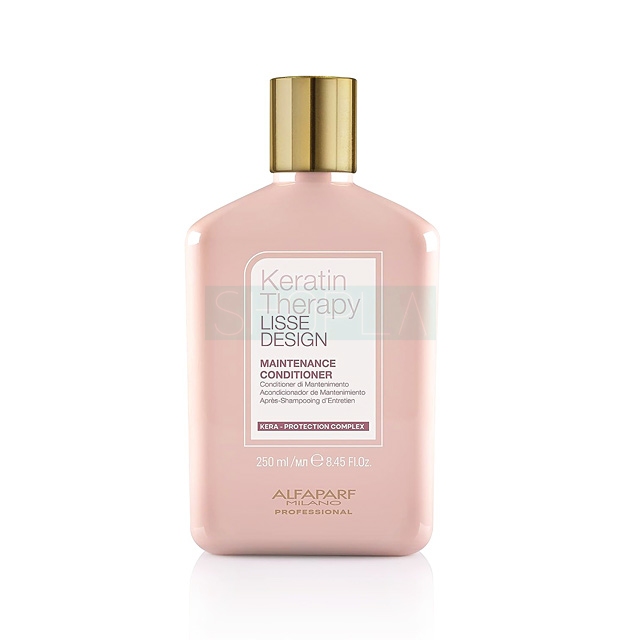 Alfaparf Lisse Design Maintenance to odżywka przeznaczona do pielęgnacji włosów po keratynowym prostowaniu. Znacznie przedłuża efekty zabiegu, skutecznie zapobiega skręcaniu i puszeniu się pasm, sprawia, że są idealnie gładkie i błyszczące. W jej składzie znaleźć można między innymi: glicerynę, masło shea, olej z orzechów babassau i hydrolizowaną keratynę. Dzięki tym substancjom odżywka Alfaparf Lisse Design Maintenance zyskała właściwości regenerujące, odżywcze, nawilżające i ochronne.