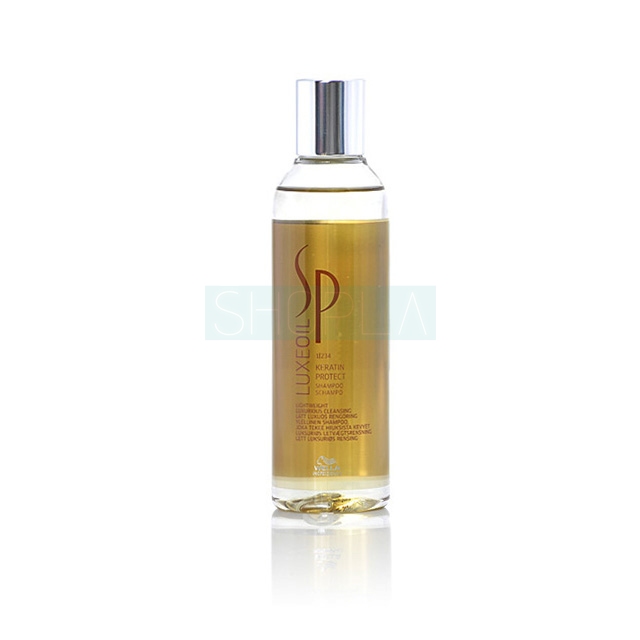 Szampon Wella SP Luxe Oil Keratin Protect zapewnia włosom odpowiedni poziom nawilżenia oraz odżywienia. Idealnie sprawdzi się w przypadku włosów osłabionych, suchych i po koloryzacji. Innowacyjna formuła szamponu zawiera: płynną kreatynę (białko będące podstawowym budulcem włosa), olejek jojoba (odpowiedzialny za regenerację i ochronę rozdwojonych końcówek), olejek arganowy (nawilżające „płynne złoto”, które gwarantuje pasmom prawidłowy poziom nawilżenia oraz wygładzenie) oraz olejek migdałowy (odpowiedzialny za dostarczenie włosom odpowiedniej dawki składników odżywczych oraz witamin). Szampon przywraca włosom miękkość, zdrowie oraz naturalny blask.