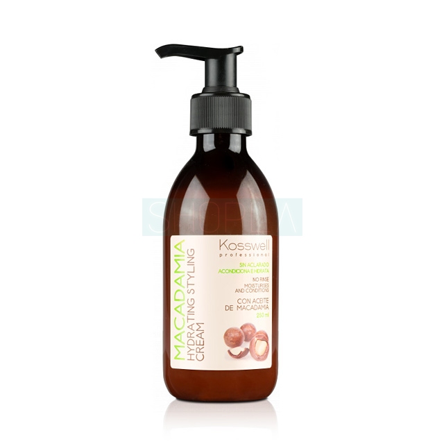 Kosswell Professional w linii kosmetyków do włosów Macadamia stosuje naturalny olejek pozyskiwany z drzew makadamia. Jego największą zaletą jest właściwość niezwykle łatwego wchłania się we włókno włosa i rewitalizacja go. Ponadto cenne składniki odżywcze, witaminy A oraz z grupy B, a także fenole, lecytyna i składniki mineralne, a przede wszystkim wysokie stężenie nienasyconych kwasów tłuszczowych i przeciwutleniaczy zapewniają włosom blask lekkość oraz zdrowy wygląd.