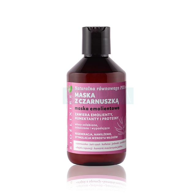 Bioelixire maska z czarnuszką przeznaczona jest do włosów osłabionych, zniszczonych i wypadających. Kosmetyk został wzbogacony czarnuszką, żeń-szeniem, kofeiną, jedwabiem oraz panthenolem. Posiada silne właściwości regenerujące, odżywcze i nawilżające. Pobudza cebulki włosów i tym samym wspomaga ich wzrost.