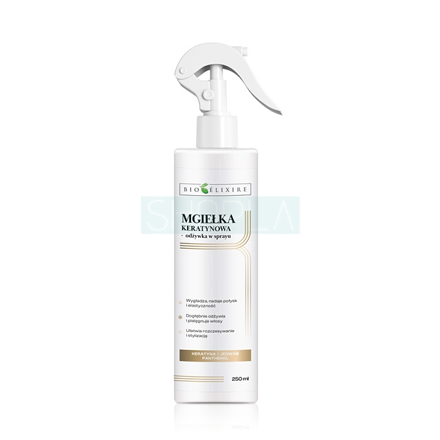 Twoje włosy są kruche, przesuszone lub narażone na codzienną stylizację? Bioelixire Mgiełka Keratynowa to szybka i skuteczna pomoc bez konieczności spłukiwania. Lekka odżywka w sprayu tworzy na włosach ochronny film, który zabezpiecza pasma przed działaniem wysokiej temperatury. Zawiera trzy kluczowe składniki – keratynę, jedwab i pantenol – które razem tworzą kompleksową pielęgnację włosów zniszczonych, łamliwych i niesfornych. Regularne stosowanie przywraca włosom zdrowy wygląd, elastyczność i miękkość.