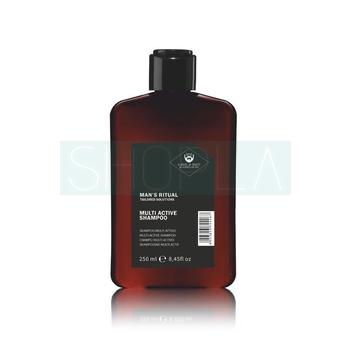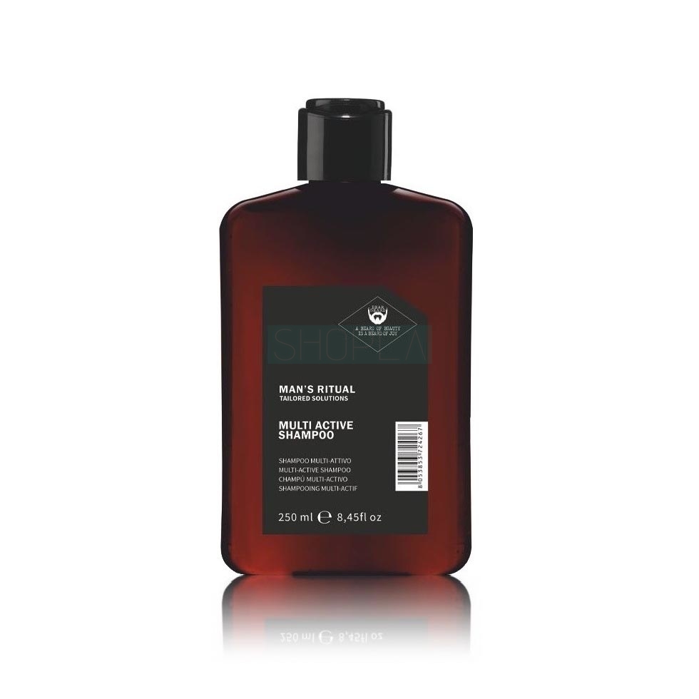 Szampon Dear Beard Man's Ritual Multi Active przeznaczony jest do pielęgnacji męskich włosów. Skutecznie oczyszcza pasma oraz skórę głowy, reguluje pracę gruczołów łojowych i tym samym ogranicza przetłuszczanie się włosów. Szampon Dear Beard Man's Ritual Multi Active wzbogacony jest ekstraktami z drzewa herbacianego i trawy cytrynowej. Substancje te działają antybakteryjnie, przeciwzapalnie oraz przeciwłupieżowo.