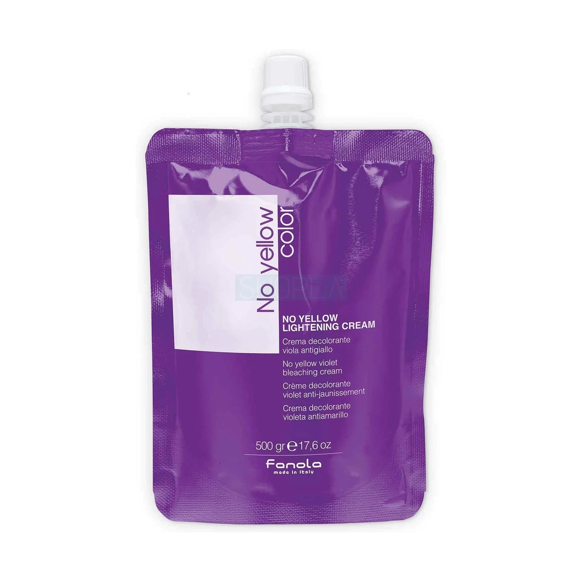 Rozjaśniacz Fanola No Yellow przeznaczony jest dla osób, którym zależy na chłodnym odcieniu. Umożliwia on zmianę koloru nawet o 8 tonów. Zawiera fioletowe pigmenty, które neutralizują żółte, ciepłe tony, przez co pozwala utrzymać chłodną tonację. Nie zawiera krzemionki ani dwutlenku tytanu. Receptura rozjaśniacza Fanola No Yellow wzbogacona została ekstraktem z borówek, które są silnym antyoksydantem. Zwalczają wolne rodniki, odpowiedzialne za szybszą utratę koloru i przyspieszanie procesów starzenia.